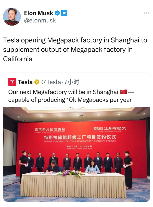 - 特斯拉CEO马斯克:上海储能超级工厂将扩充加州产能