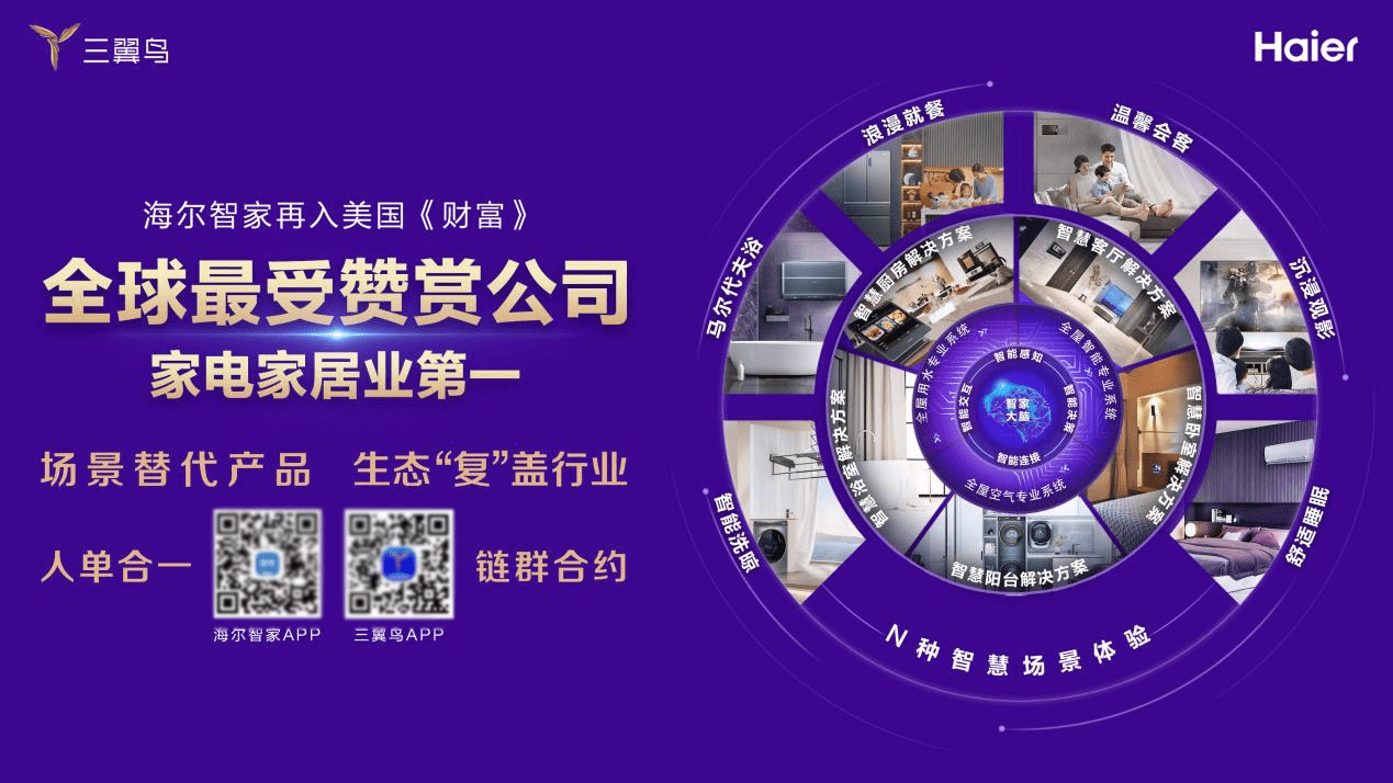 Employers Institute)公布了2023年英国最佳雇主榜单,海尔智家再次凭借优秀的雇主品牌建设,成为唯一上榜的中国家电企业。 品牌引领:以用户需求为中心,做时代的企业 没有成功的企业,只有时代的企业。而企业的“时代意义”其实很简单,就是为不同需求的用户提供他们需要的好产品和好服务,海尔智家能够收获评审团赞赏,正在于他就是这样一家企业。 30多年来,海尔智家为行业贡献了一个世界级的产品品牌。而今,海尔智家聚焦用户需求的变化,又要创造一个全球引领的生态品牌,不仅提供高品质的产品和服务,更通过立足高端、落地场景、融合生态,为用户打造新时代智慧美好生活,这也为投资者创造了更广阔的投资前景。 其中,海尔三翼鸟将产品融入场景,首发“1+3+5+N”全屋智慧全场景解决方案,以2000+智慧技能、1000+场景方案为用户开启“一站定制智慧家”时代。不论局改还是整装用户,三翼鸟都能提供量身定制的专属解决方案,从前期设计到中期施工、后期家电家居入户全流程一站全包。今年,海尔三翼鸟将累计建成3300+智慧生活体验馆,进一步推进场景替代产品。同时,海尔智家立足衣联网、食联网等构筑起行业最大智慧家庭场景生态,其服务用户的长度和宽度被大大延展。 时代在变化,行业在前行。海尔智家以用户需求为核心,凭借在科技引领、产品创新、人才国际化、管理模式领先、品牌全球化以及社会责任履行等方面的综合竞争力为全球用户带来持续升级的智慧美好生活,以此赢得业界赞赏和用户信赖。而这,也是本次海尔智家能够获评《财富》“全球最受赞赏公司”的原因所在。