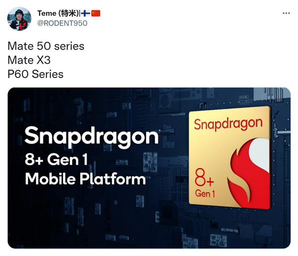 根据海外爆料人特米的最新消息,该机的核心配置上将与华为Mate50系列保持一致,搭载高通骁龙8+处理器。